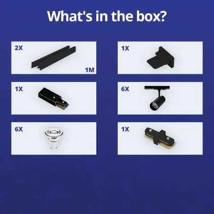 Beschrijving Bright Choice Complete Set 1-Fase Rail 2 Meter Zwart | incl. 6x Spot + GU10 2700K 3W Dimbaar + Eindkap, Voedingsconnector en I-Verbindingsstuk
