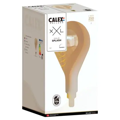 Beschrijving Calex XXL Splash Goud LED E27 Filament 3W 250lm- 822 Zeer Warm Wit | Dimbaar