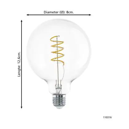 Beschrijving Eglo LED E27 Globe Helder Filament 7.3W 806lm - 827 Zeer Warm Wit | Vervangt 60W