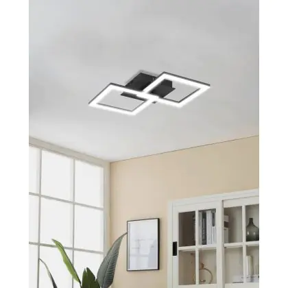 Beschrijving Eglo Plafondlamp RGBic Staal Zwart 19.6W 2100lm - 830 Warm Wit + RGB | Dimbaar