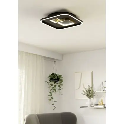 Beschrijving Eglo Wand en Plafondlamp Tiriolo Staal Zwart Goud 16.2W 2100lm - 840 Koel Wit | IP20