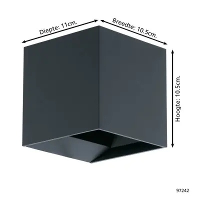 Beschrijving Eglo Wandlamp Calpi Aluminium Antraciet 3.3W 340lm - 830 Warm Wit | IP44