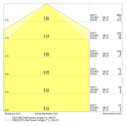 ![]() De kleurcode is een combinatie van de kleurweergave (CRI) en lichtkleur (Kelvin). Het eerste getal is de kleurweergave (1 = zeer slechte kleurweergave, 9 = maximale kleurechtheid). Het tweede en derde cijfer betreft de lichtkleur. Een lamp met kleurcode 830 heeft bijvoorbeeld een goede kleurweergave en straalt een warm wit licht uit (3000K), waar een lamp met de kleurcode 940 een uitstekende CRI heeft en een koel wit licht (4000K) uitstraalt. |