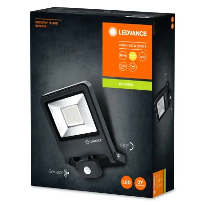 Beschrijving Ledvance LED Breedstraler Endura Zwart 50W 4500lm 100D - 830 Warm Wit | IP44 - Bewegings- en lichtsensor - Symmetrisch