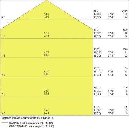 De lichtopbrengst (Lumen), geeft weer hoe krachtig het uitgestraalde licht is. Dit is belangrijk om te weten om de juiste sfeer te creëren. 0 tot 400 Lumen is bij uitstek geschikt voor accent- of sfeerverlichting. Een hoger aantal Lumen is, afhankelijk van de grootte van de ruimte, beter geschikt als ondersteunende- of basisverlichting. Heb je plafonds hoger dan 4 meter, dan is een lichtopbrengst van minimaal 8000lm aan te raden indien heldere verliching gewenst is (vb. in werkomgevingen).
