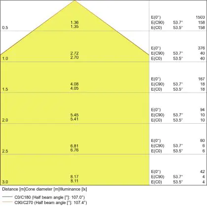 De gradenbundel geeft informatie over hoe breed het licht wordt uitgestraald. Dit zit tussen de 0 en 360 graden (D). Hoe kleiner de hoek, hoe specifieker de lichtbundel is. Over het algemeen is een smalle gradenbundel perfect voor sfeer- of accentverlichting, terwijl een brede gradenbundel ideaal is om grote oppervlaktes te verlichten.