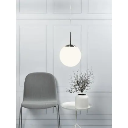 Op zoek naar verlichting voor boven de keukentafel of in (entree)hallen? Het eenvoudige maar glamoureuze design van de Nordlux Cafe is een goede keuze. De hanglamp heeft een matwit opalen lampkap met een geborsteld stalen bovenkant en buis. Deze zorgt voor een zacht in diffuus licht in jouw ruimte.