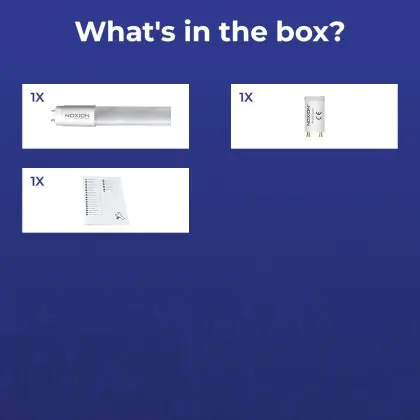 Deze Noxion LED TL buis heeft een Lumen / Watt efficiëntie van lm/W. Dit is de waarde die je verkrijgt door de lichtopbrengst (3750 Lumen) te delen door het wattage (23W) van deze lichtbron. Hoe weet je of jouw lichtbron een goede efficiëntie heeft? In dit geval ligt de lm/W waarde boven de 65. Je kunt er ook voor kiezen om een LED geïntegreerd TL armatuur te kopen. Hierbij heb je de keuze uit diverse (waterdichte) LED montagebalken, die in een divers aantal Lumen verkrijgbaar zijn. Een (dimbaar) LED paneel is ook een slimme optie, met name voor ruimtes met een systeemplafond (eenvoudige installatie) en kantoren (UGR<19 varianten).