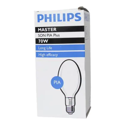 DePhilips SON PIA Plus is een lamp met een zeer lange levensduur, hoge lumen/watt verhouding en heeft een zeer hoge betrouwbaarheid. De Philips SON PIA Plus 70W 220 E27 (MASTER) gasontladingslampen hebben een E27 lampvoet. Ze hebben een zeer hoge lichtopbrengst en zijn zeer efficiënt. Door de lange levensduur verlaagt u uw vervangingskosten.