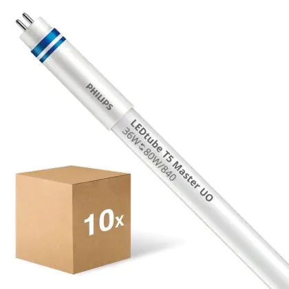 De Voordeelpak 10x Philips LED Buis T5 MASTER (HF) Ultra Output 36W 5600lm - 840 Koel Wit | 145cm - Dimbaar - Vervangt 80W is het perfecte alternatief voor conventionele TL lampen. Met een verbruik van 36W, bespaar je veel energie vergeleken met conventionele TL lampen die 80W verbruiken. Dit verschil ga je dan ook zeker merken in je maandelijkse energie- en onderhoudskosten!