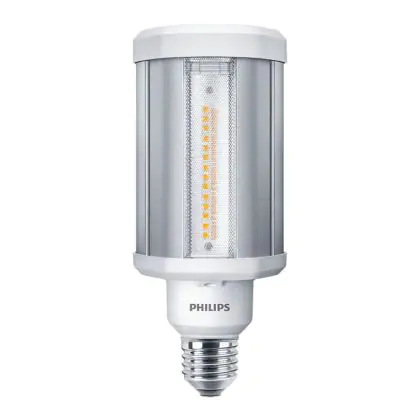 Met de aanschaf van deze LED HPL lamp met E27 (Dikke Fitting) fitting maak je een verantwoorde keuze. Deze LED variant is de zuinige vervanger van traditionele (HID) gasontladingslampen en is onder andere geschikt voor publieke ruimtes zoals bushokjes, parken, stations en parkeergarages. Ook kom je dit type LED gasontladingslamp tegen als verlichting voor straatlantaarns, magazijnen, fabrieken en winkels.